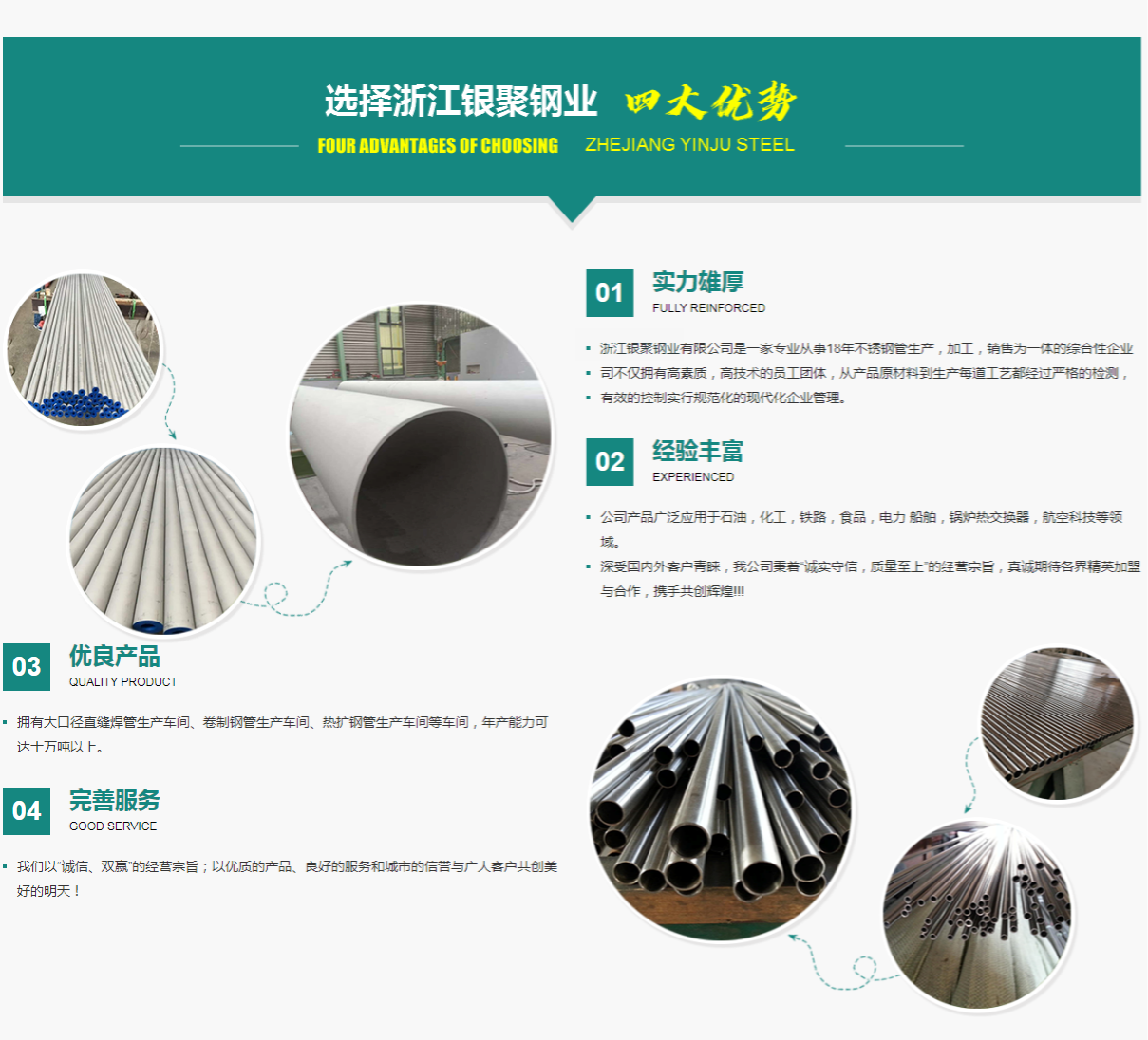 浙江銀聚鋼業(yè)有限公司公司簡(jiǎn)介浙江銀聚鋼業(yè)有限公司秉承“質(zhì)量第一、信譽(yù)至上”的銷售宗旨和“團(tuán)結(jié)奮進(jìn)、拼搏創(chuàng)新”的企業(yè)理念,致力于創(chuàng)造和實(shí)現(xiàn)富有活力的企業(yè)管理模式和建設(shè)完善質(zhì)量管理體系,堅(jiān)持以“名牌戰(zhàn)略”為經(jīng)營(yíng)原則,公司憑借豐富的銷售經(jīng)驗(yàn)和管理理念,已具有較強(qiáng)的銷售和服務(wù)團(tuán)隊(duì)。公司將以積極創(chuàng)新,不斷開(kāi)拓進(jìn)取與發(fā)展,提高質(zhì)產(chǎn)質(zhì)量,拓展市場(chǎng)領(lǐng)域,使我們的產(chǎn)品穩(wěn)中...